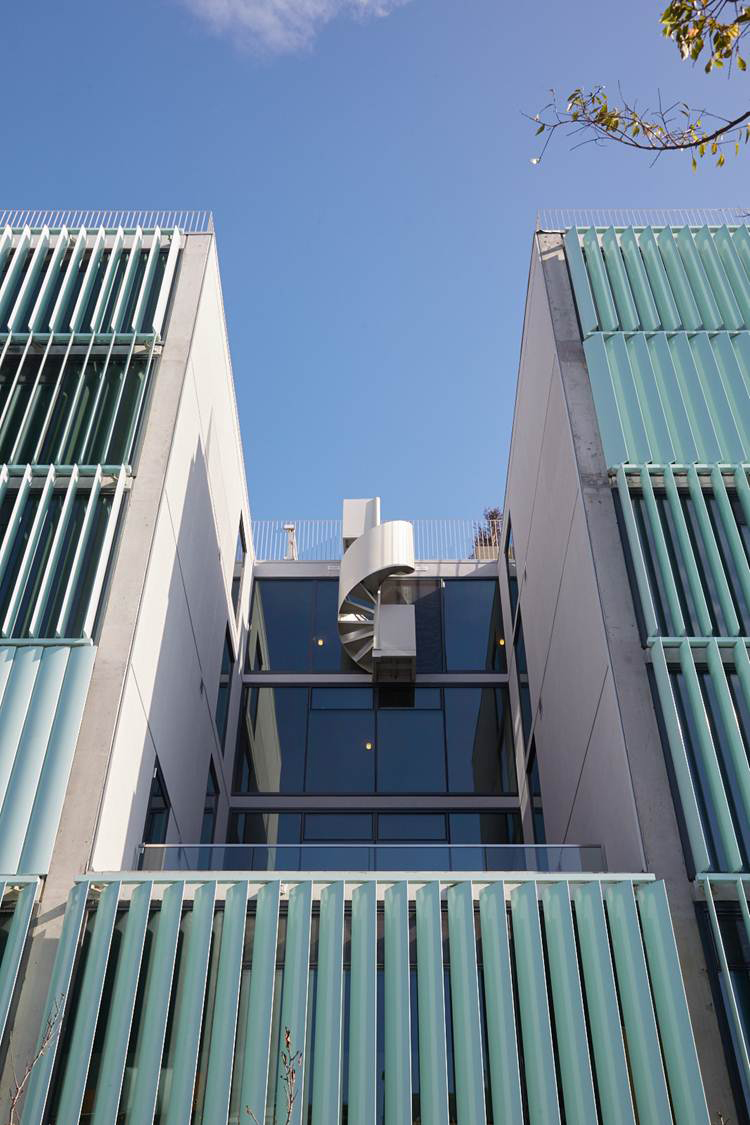 8 Octavia毗鄰101公路,成為進(jìn)入舊金山的地標(biāo)性建筑。由住戶自由操作的百葉窗,讓建筑立面展現(xiàn)出變化的形象。為了更有效的利用空間,建筑采用復(fù)式設(shè)計(jì),且每個(gè)單元中間包含一個(gè)中庭。建筑設(shè)備隱藏在墻壁內(nèi),為居住者提供足夠的可利用給空間。場(chǎng)地位于101公路與城市道路的連接處,這里也是舊金山西北區(qū)的入口。The First Baptist Church教堂的典型立面及顯著的檐口是這棟建筑的顯著標(biāo)志。與其相反的,在Octavia Boulevard大道的另一邊,8 Octavia完善了城市的入口景觀。這棟地標(biāo)性建筑以其傳統(tǒng)又創(chuàng)新的外貌,成為舊金山的新地標(biāo)。細(xì)長(zhǎng)的建筑體量在街道上延展,并在兩端形成商業(yè)區(qū)。傳統(tǒng)上的舊金山街道立面都較為精致,賦有精巧繁復(fù)的立面裝飾,除此之外,這些當(dāng)代建筑需用較低的能量消耗和較少的材料來滿足居住的需求。建筑外表皮需具備自我調(diào)節(jié)能力,隨著時(shí)間和季節(jié)的變化做出相應(yīng)改變,并適時(shí)的調(diào)整室內(nèi)環(huán)境氣候。在建筑的西立面,每一戶居住著都可以通過調(diào)整外立面百葉窗來控制自家的太陽(yáng)光照強(qiáng)度,噪音大小,并同時(shí)改變著外立面圖案。這種不統(tǒng)一的變化如同指示牌,不斷映射著居住者的生活狀態(tài)。
